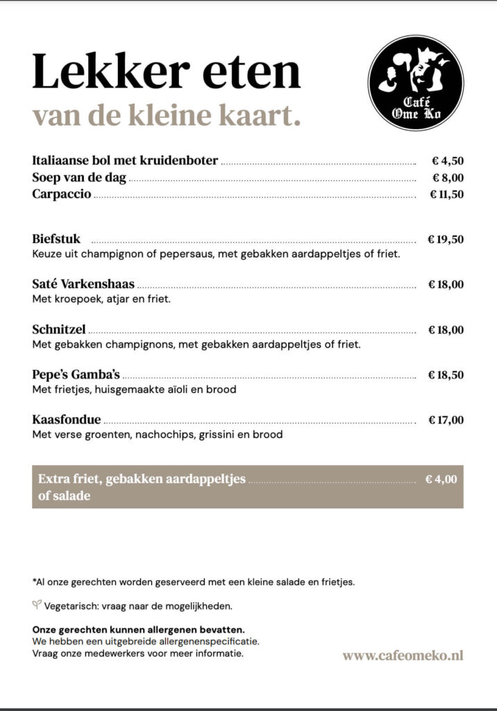 Bekijk onze menukaart